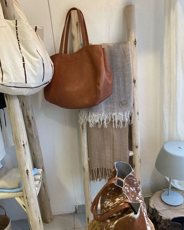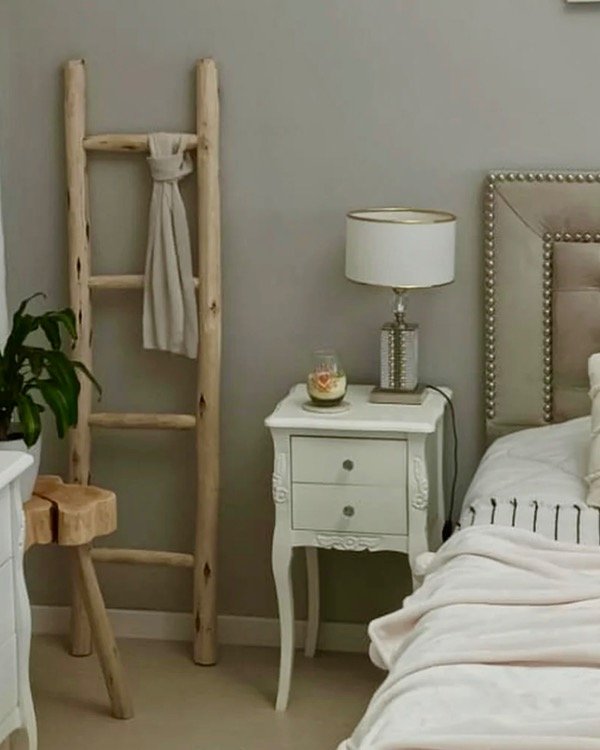Ésta escalera decorativa está hecha 100% en palo de eucalipto, destacando sus formas orgánicas, vetas visibles y textura natural. Ideal para usar como perchero, toallero o simplemente como un elemento decorativo que aporta calidez y estilo artesanal a cualquier ambiente.