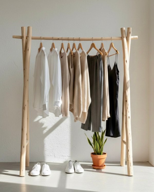 El perchero nórdico escandinavo está elaborado artesanalmente en palo de eucalipto, una madera robusta y de gran belleza natural. Su diseño en forma de V invertida lo convierte en una pieza decorativa y funcional, perfecta para entradas, dormitorios o espacios comunes con estilo rústico y cálido.